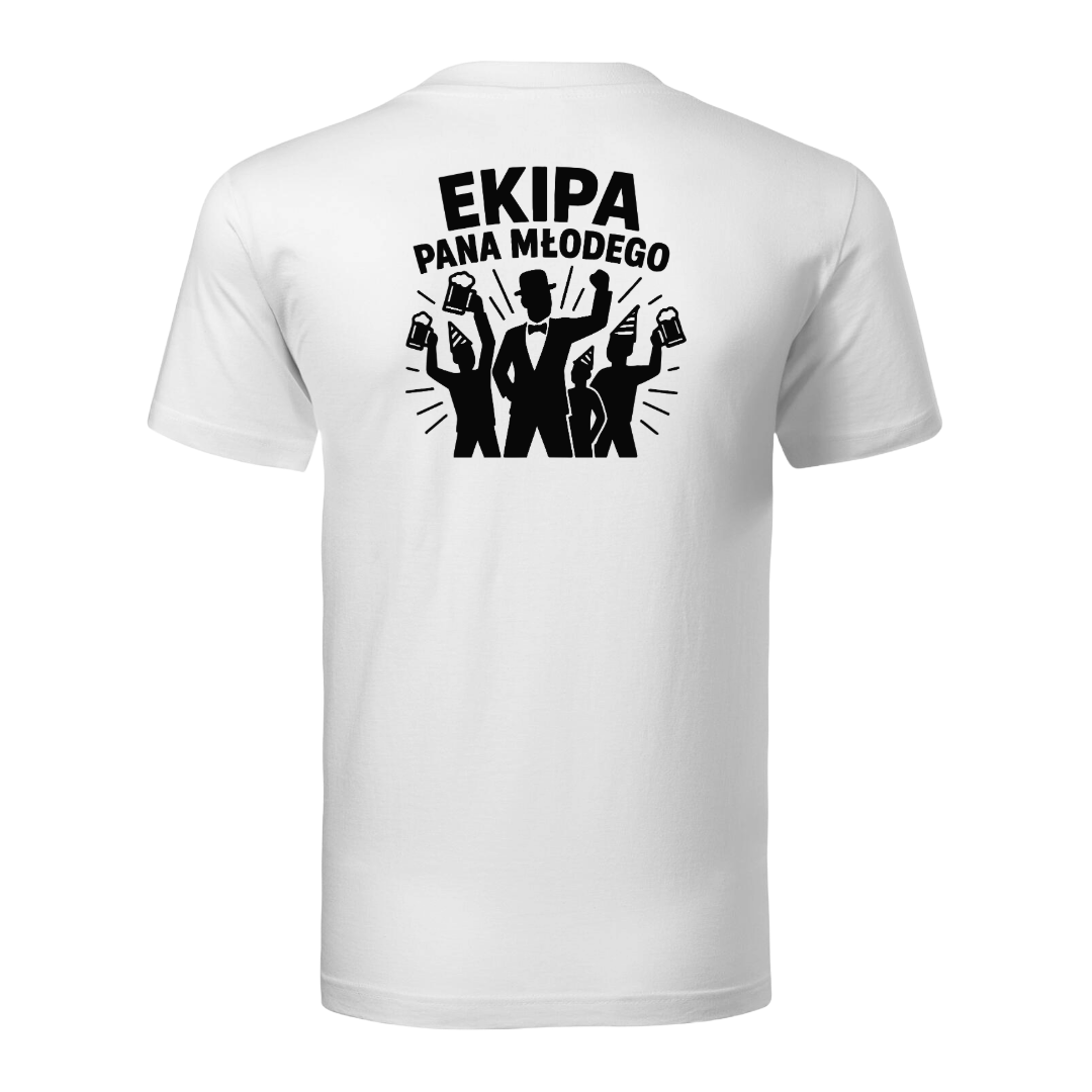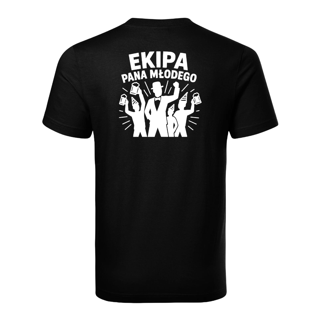 – Tył: napis „EKIPA PANA MŁODEGO” + grafika z ekipą i toastami -