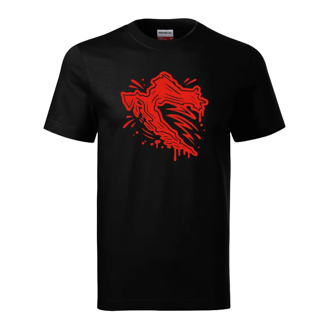 Design w stylu nacotokomu – czerwony kontur Chorwacji, jakby ktoś krzyknął „bałkański urlop!” i rzucił pędzlem w kartkę. Styl brutalistyczny, trochę uliczny, trochę turystyczny, totalnie wakacyjny.