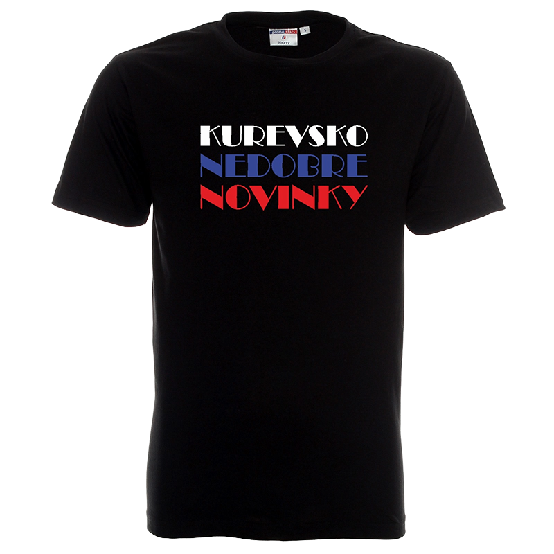 ✔ Nadruk: Kolorowy napis “Kurevsko Nedobre Novinky” w stylu flagi narodowej Czech