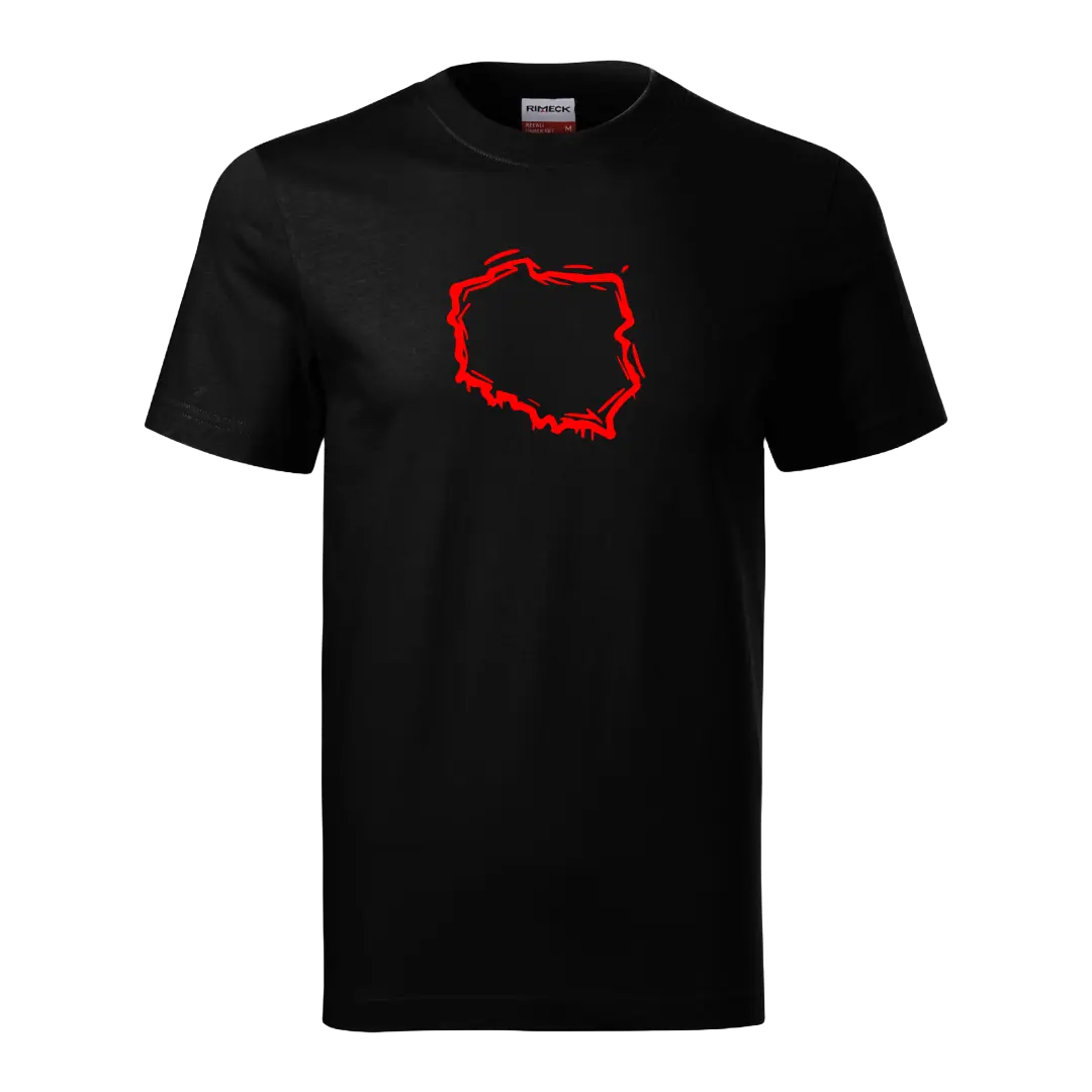 Koszulka „Polska Mapa Kontur” to czarny klasyk z minimalistycznym konturem granic – w wersji białej albo czerwonej. Prosta forma, ale niosąca więcej niż niejeden transparent.