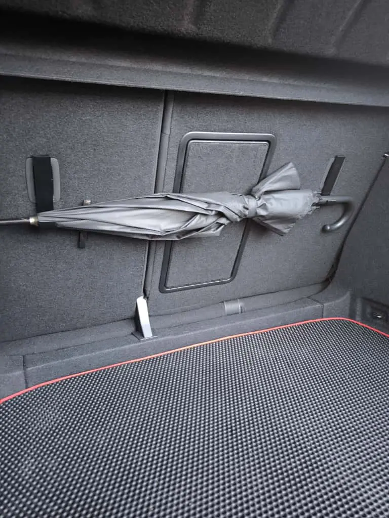 Możesz teraz wpiąć swój parasol, siatki z zakupami lub inne przedmioty, ciesząc się porządkiem.