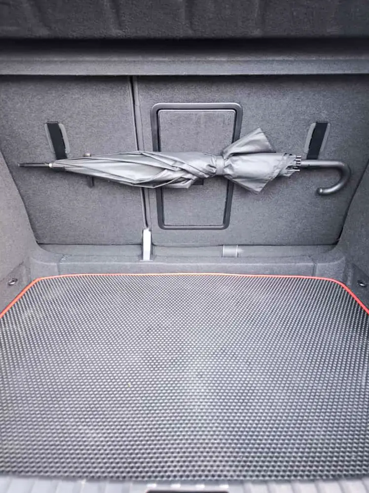 Pamiętaj, aby umieścić go uchwytem do góry, tak aby parasol był mocowany od spodu. Poczujesz delikatne kliknięcie, które potwierdzi prawidłowe osadzenie – nie używaj siły. - Przywróć fotele: Ułóż tylne fotele z powrotem do standardowej pozycji siedzącej.